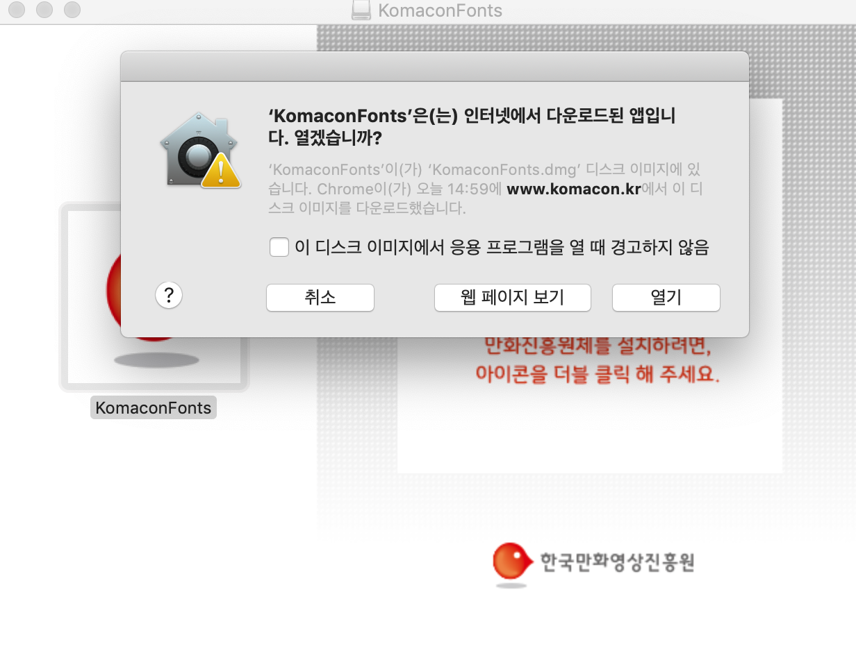 확인되지 않은 개발자의 프로그램을 설치할 수 없다는 팝업이 뜹니다.