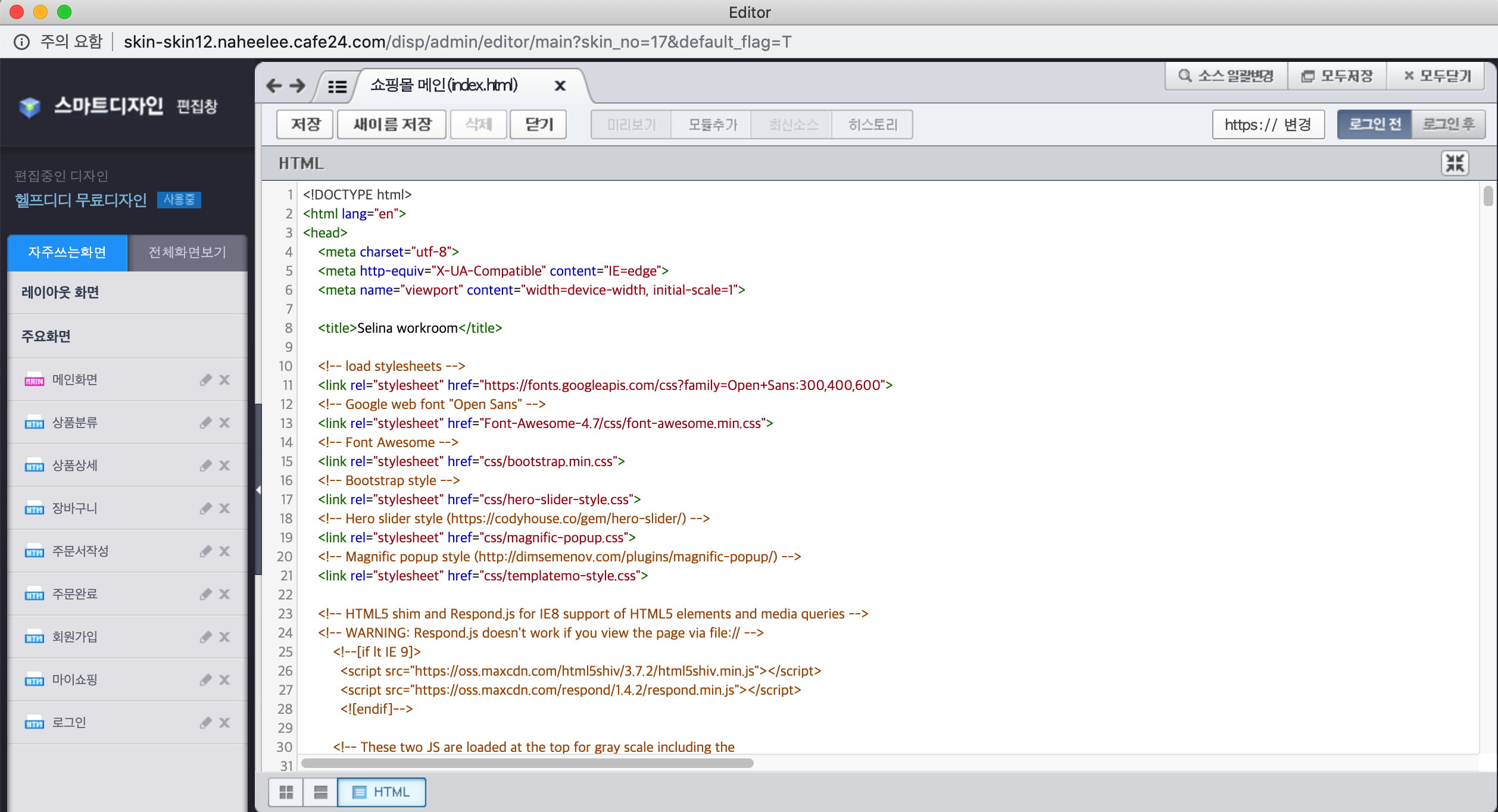 카페24 쇼핑몰관리자에서 디자인수정하기