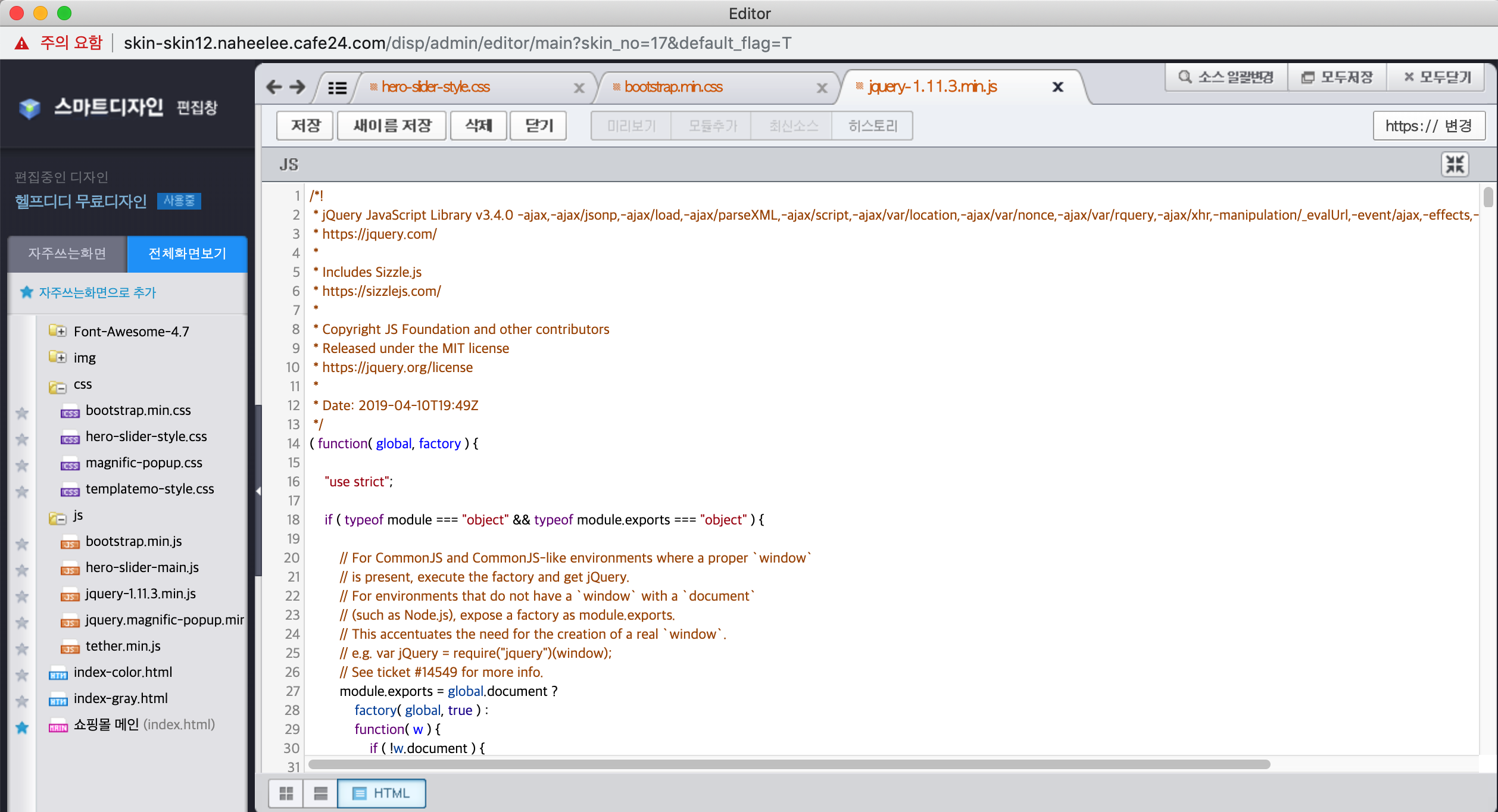 2019/04/26 - [카페24 활용] - 카페24 홈페이지+쇼핑몰만들기 2: 카페24에서 설치한 템플릿 디자인수정하기