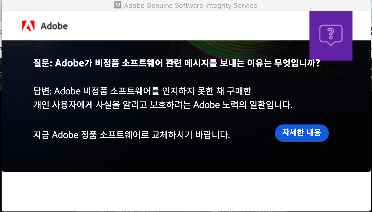 정품이 아닌 Adobe 제품군을 깔아두셨다면...