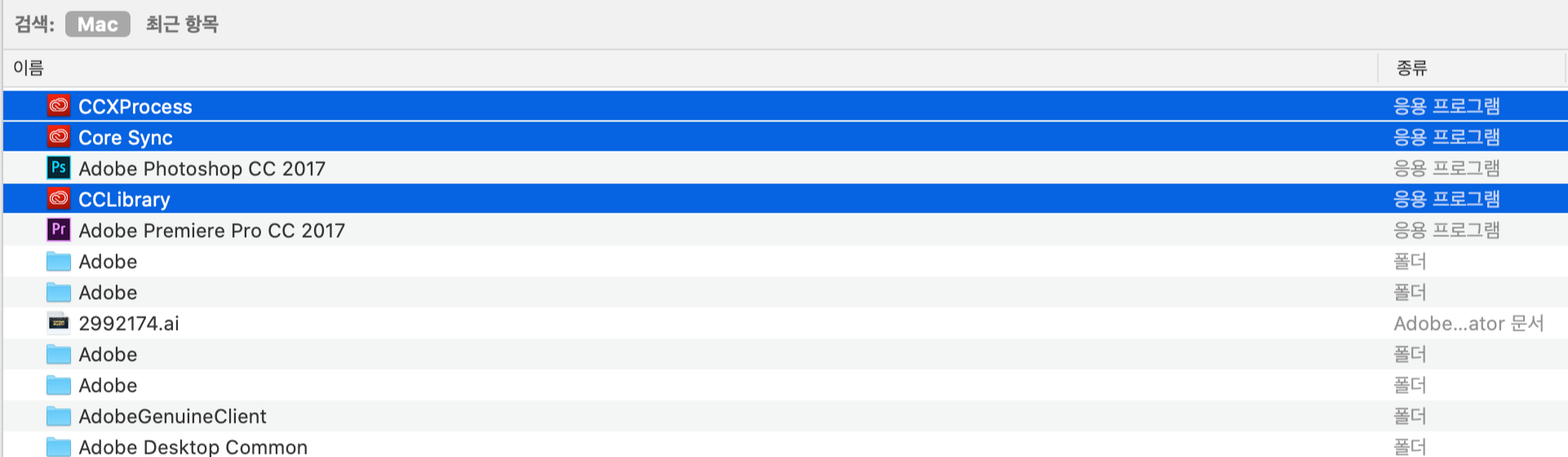 등을 finder에서 찾아 삭제했구요.