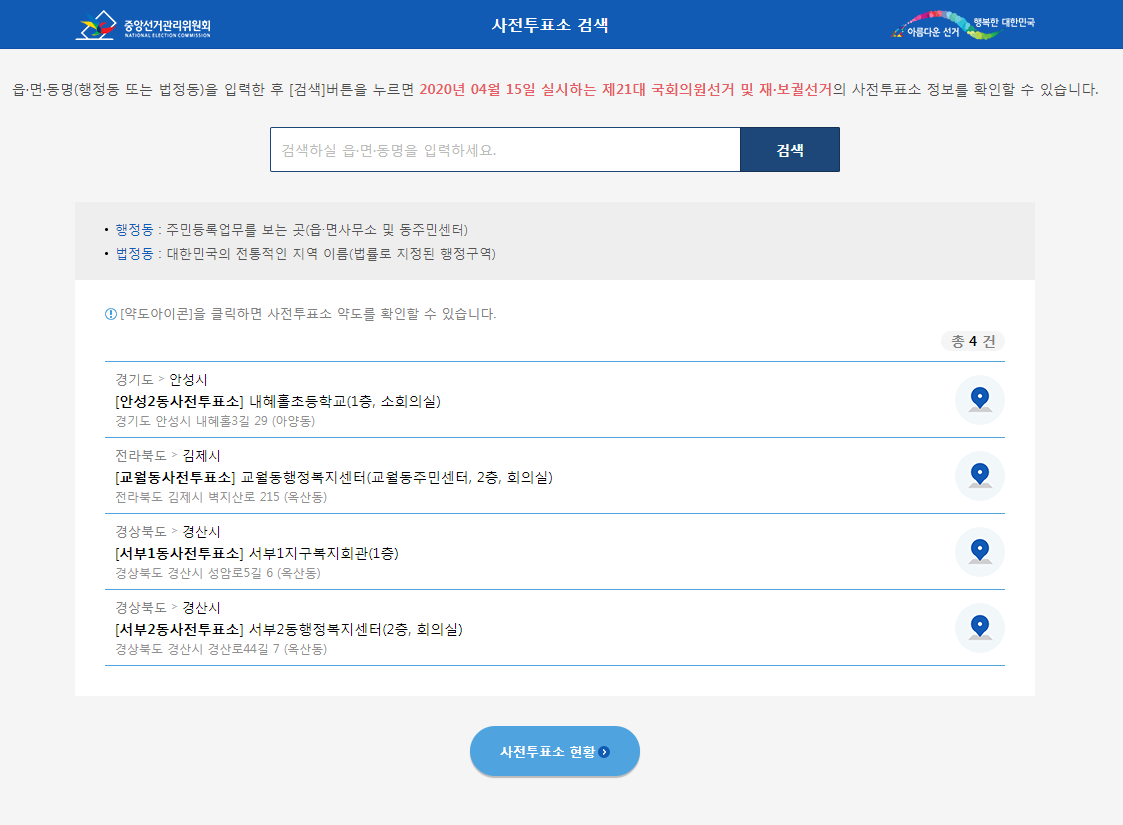 - 사전투표소검색