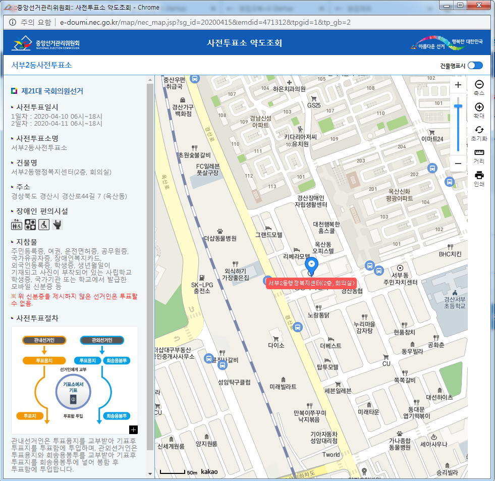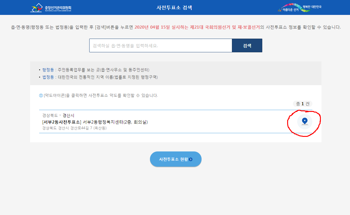 관할 동사무소내에 위치한 사전투표소가 뜹니다.;;;