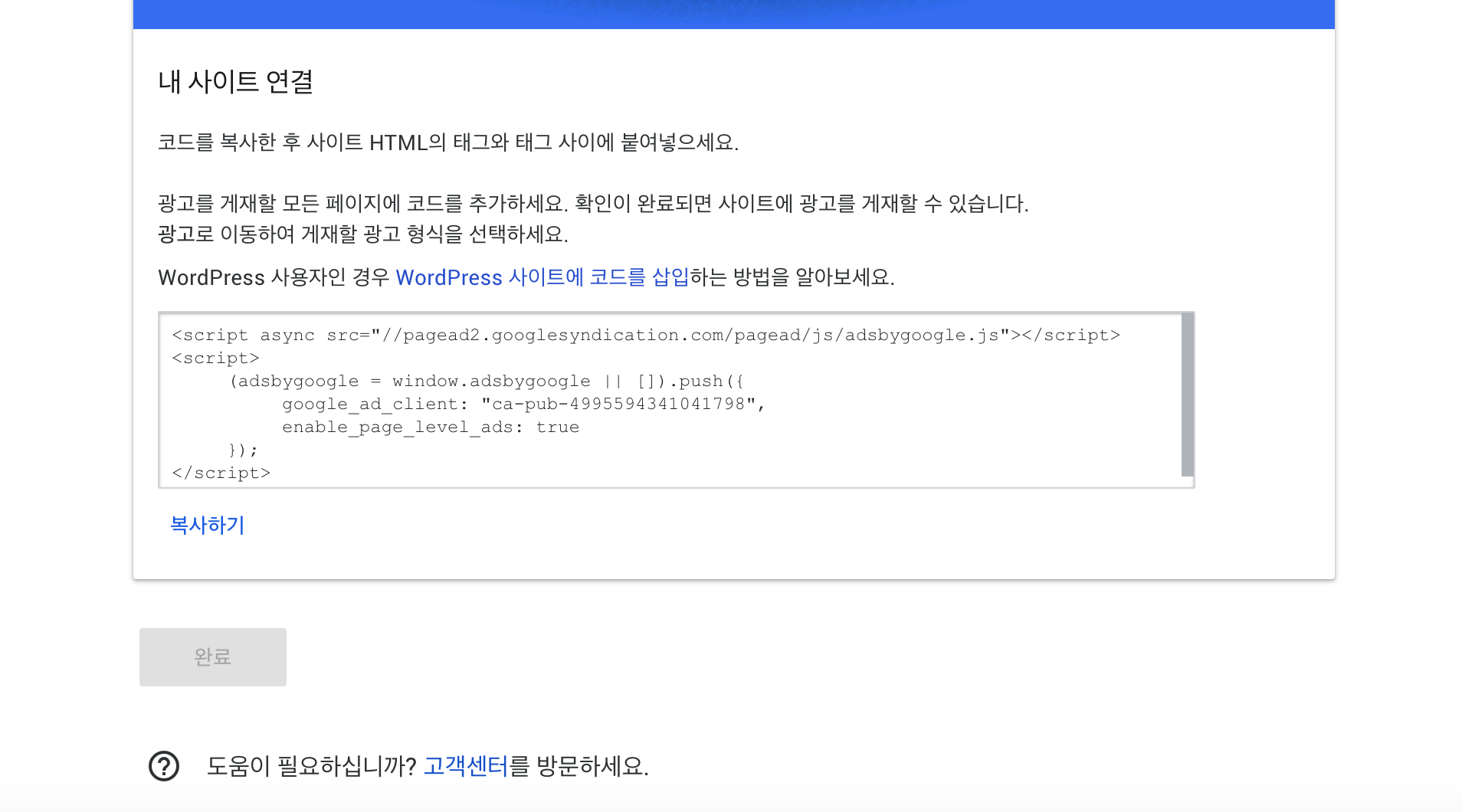 애드센스에서 복사해 둔 코드를 넣어줍니다~