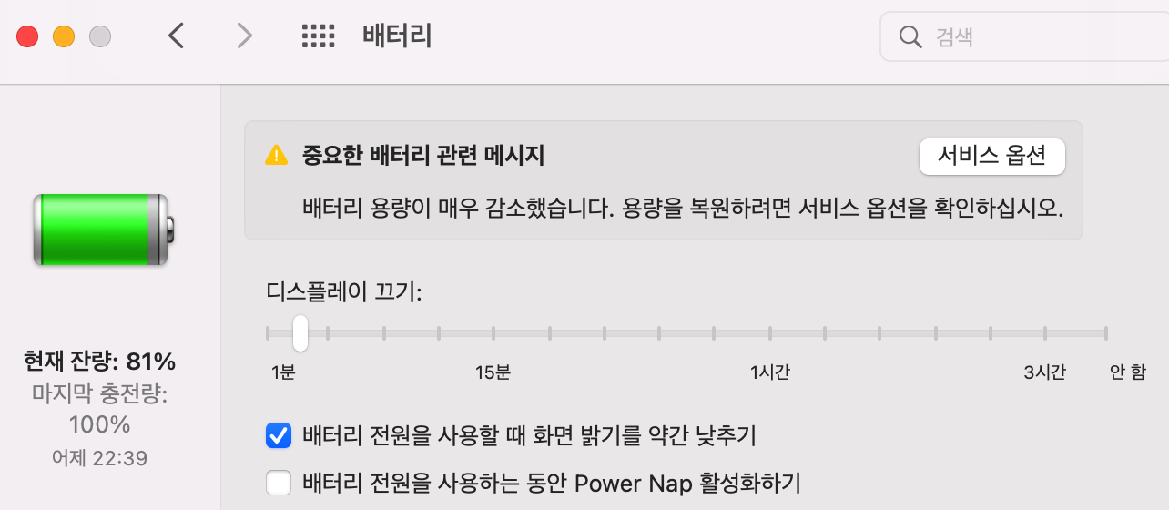 맥북이 꺼져있고 충전이 10분만 해도