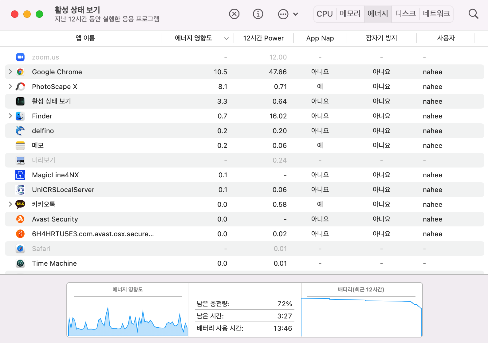 Finder - 응용프로그램 - 유틸리티 - 활성 상태 보기