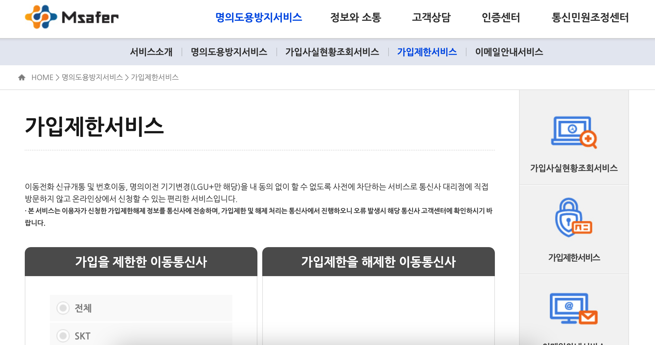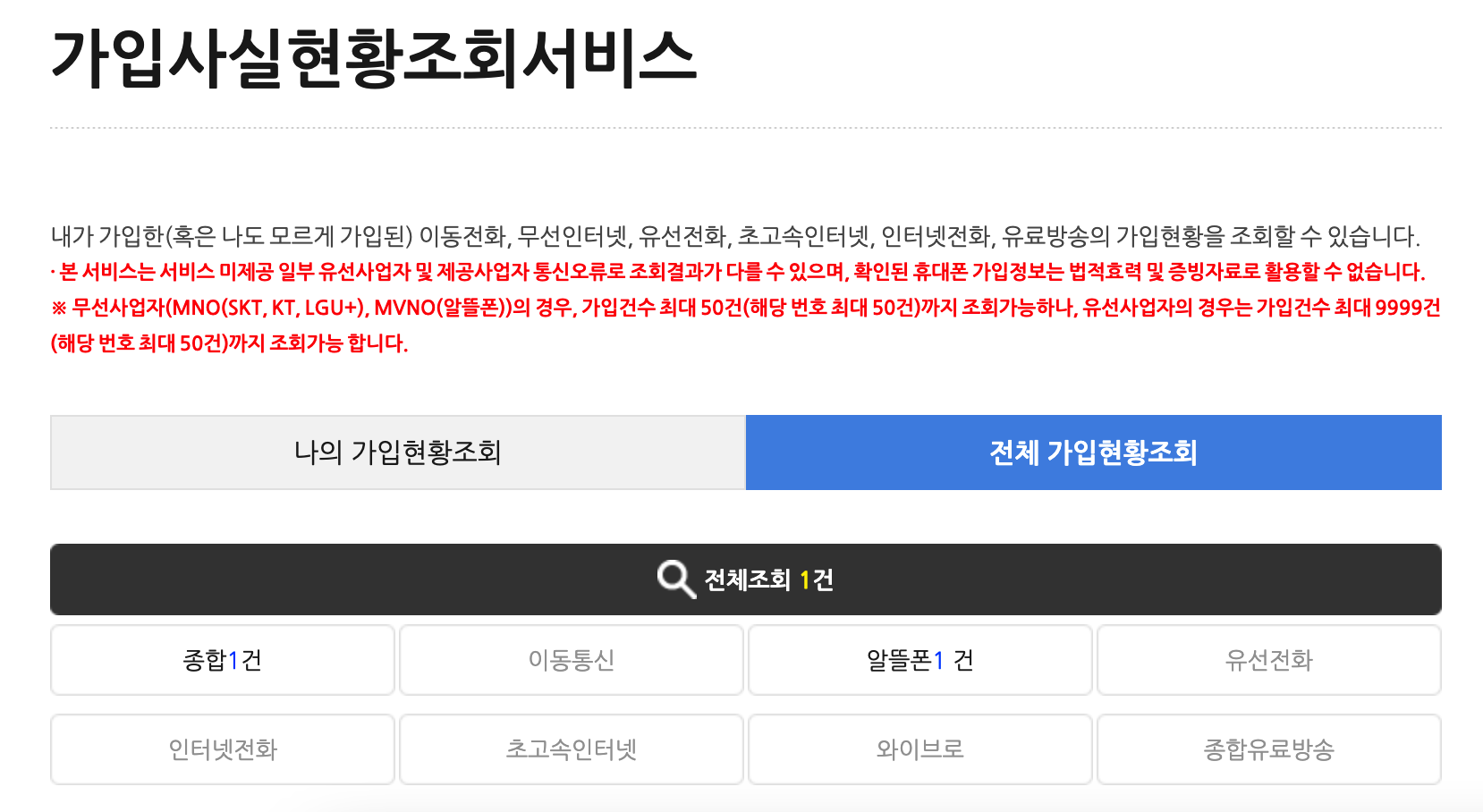 이제 명의도용된 폰이 없다는 걸 확인했으니